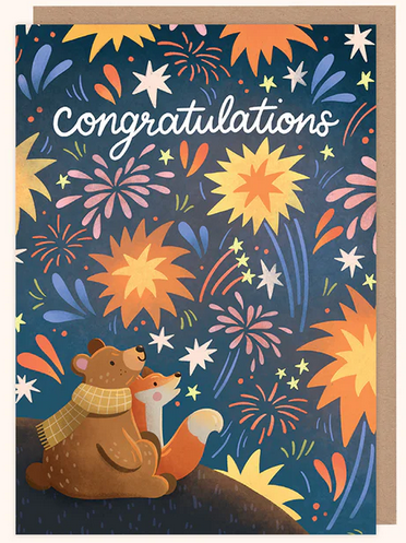 Celebrate success with this elegant "Congratulations" card, featuring vibrant fireworks on the front. Perfect for marking special achievements, this card adds a seasonal touch to heartfelt messages.
